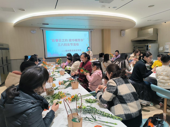 活动现场,在烘焙老师的讲解和指导下,大家竞相发挥创意、仔细涂抹,精心装扮着自己的作品,体验烘焙带来的乐趣,一双双灵巧的手制作出一个个独具匠心的蛋糕,活动现场弥漫着“温暖、快乐、幸福”的氛围。女教职工们在花艺老师的悉心指导下,用心构思、精心创作,在颜色、角度、层次等方面不断尝试,将不同的花材错落有致地搭配在一起,制作出了错落有致、生机盎然、创意十足的插花作品。大家相互欣赏,喜悦之情溢于言表。