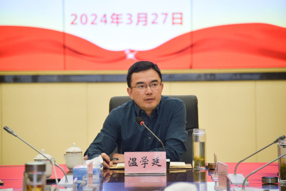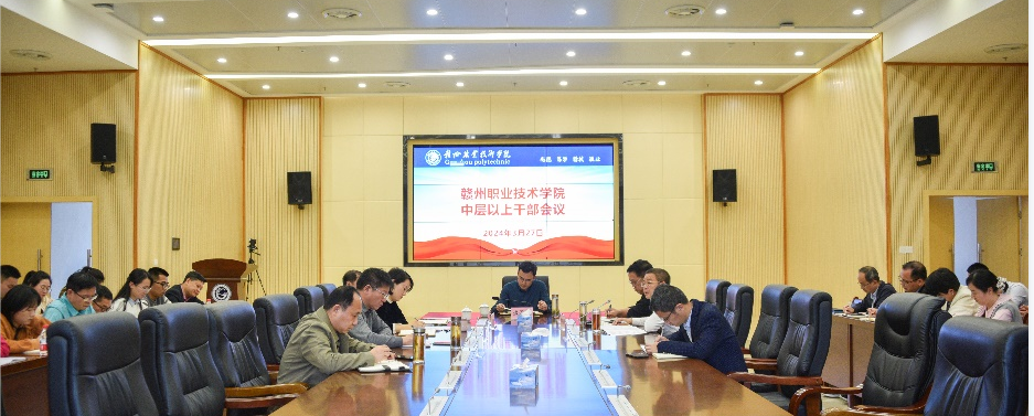 3月27日下午,学校在行知楼二楼会议室召开中层以上干部会议,党委书记温学延出席并讲话,会议由党委副书记汤晓军主持,学校在家领导和中层以上干部参加会议。