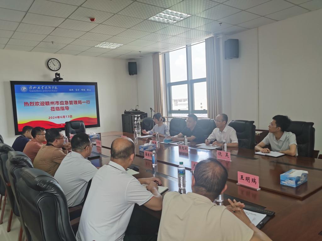 6 月13日,赣州市应急管理局局长梅旭军率领相关科室负责人来到学校调研指导,实地查看了智能制造学院、电气工程学院、培训基地的教学设施、实训场地和生活配套设施等。学校党委书记温学延,党委委员、组织部部长温继荣及相关部门负责人同志陪同调研。