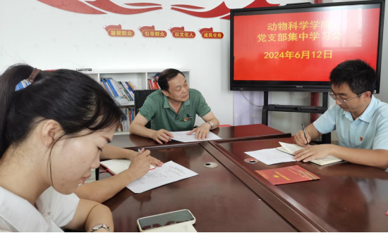 近日,动物科学学院党支部召开6月党支部集中学习会,会议紧紧围绕“重温习近平总书记视察江西重要讲话精神 以走在前、勇争先、善作为的标准要求落实推进学校高质量发展”这一主题开展,党委委员、工会主席、巡听小组组长熊晓林带队指导工作,会议由党支部书记吴辉生同志主持,支部全体党员参加了会议。