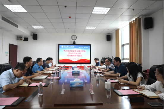 6月18日上午,吉安职业技术学院校长王汝志、副校长李亮一行来校调研交流,学校党委书记温学延,党委委员、副校长谭旭,党委委员、教务处处长于成龙,以及相关部门负责同志热情地接待了调研组一行。