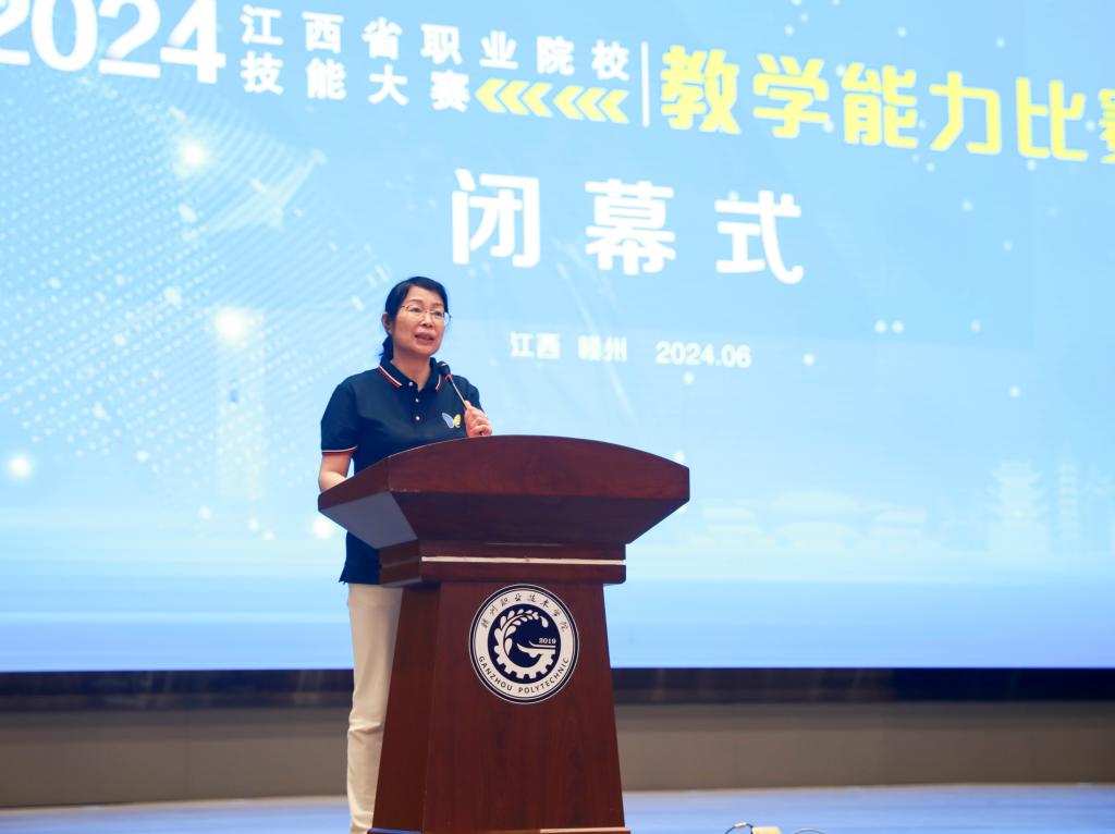 江西省职业院校技能大赛组委会委员、江西科技师范大学教育学部党委书记徐艳公布获奖情况并宣布闭幕