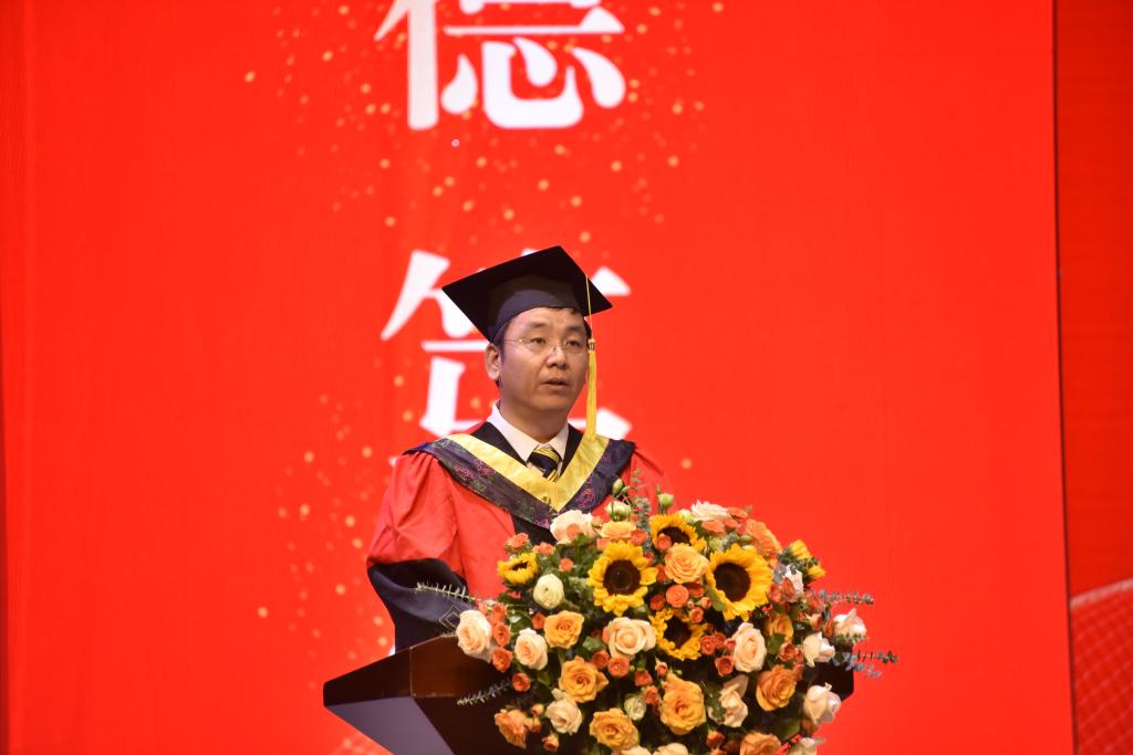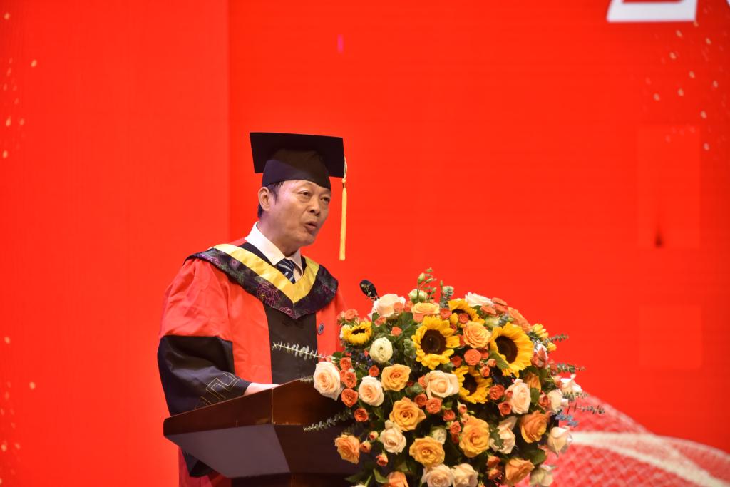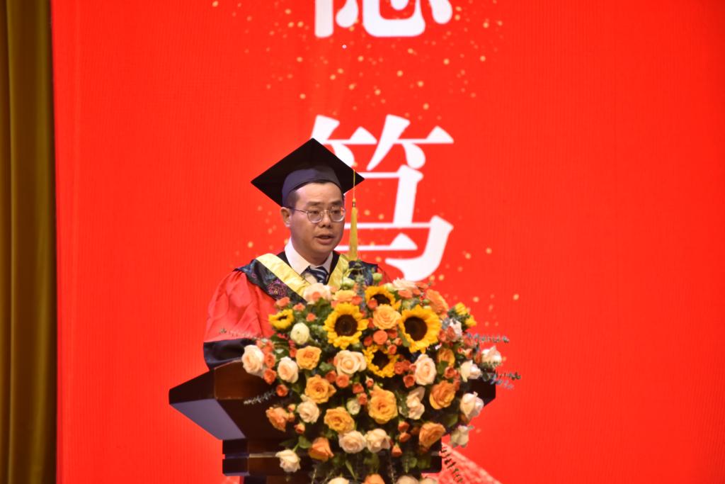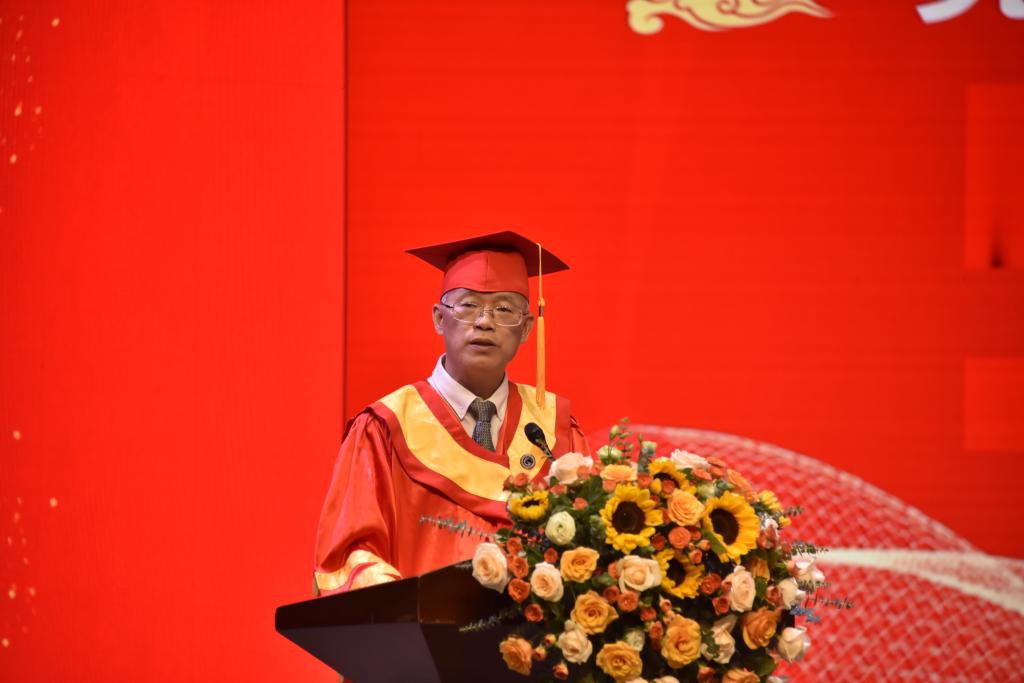 党委副书记、校长吴跃文以“讲究——成就多彩人生”为题,与毕业生们分享了人生奋进的经验,对全体毕业生在未来人生的新征程中提出了七点“讲究”寄语:第一,讲究时代。要经常问问自己,有没有跟上新时代?在忙忙碌碌的征程中,要停下来想想,问一问自己:新思想有没有落下?新知识有没有遗落?新技术有没有学会?新潮流有没有忽视?新生活有没有体会?跟上新时代的步伐,才能成就新人生!第二,讲究人生。人生的选择开始迥异:有人奋进,有人躺平;有人学习,有人游戏;有人创新,有人逍遥;有人内卷,有人避世……相较上一代人的没得选,你们是有得选,这是你们幸运,但也是巨大考验。如果选“奋进”“学习”“创新”和“内卷”,就能成就人生;如果选择“躺平”“游戏”“逍遥”和“避世”,将失去这个时代,心境也将注定灰暗!第三,讲究学识。新时代是个不断学习和创新的时代。如果认为毕业了,学习结束了,那就大错特错了。学校学习只是提供专业教育的一个理论和方法框架,真正的学习是依据岗位要求的不断精进!实践岗位上的学习才是多巴胺分泌最多的学习,才是锻造成为大国工匠、科学家和创新人才的利器。在实践岗位上“讲究”学识才是文化人应有的本色!第四,讲究工作。对待工作,现代人是又爱又恨。恨的是工作经常将人折磨得身心疲惫,爱是只有工作才能最集中地彰显人生价值。如果敷衍应对工作,工作将折磨一生;如果讲究工作,讲究工作中的学识、品质、趣味、创新和协同,那工作将越干越有味,工作将成就一生!第五,讲究朋友。选择什么样的人作为朋友是重要的人生课题,也是重要的“讲究”!得良朋好友,将受益终身;若与狐朋狗友为伍,将变得没有正形。讲究朋友,择友而交,是人生清醒!第六,讲究生活。生活是个万花筒。讲究生活,生活就回报多姿多彩;如果敷衍生活,那生活将变得邋遢和杂乱无章。讲究生活,不是“穷讲究”“硬讲究”,讲究生活是在有限的条件上,花最小的代价获取最高品质的生活。这个过程不仅享受了高品质的结果,还有追求高品质的快意过程!第七,讲究健康,新时代是个好时代。享受好时代,健康身体不可或缺。讲究健康,就要积极地适量地开展锻炼,学会科学辨识自己的身体状况,掌握科学锻炼自己的方式和方法,在劳动中、工作中和体育活动中不断地改善自己的身心状况,为祖国健康工作五十年!