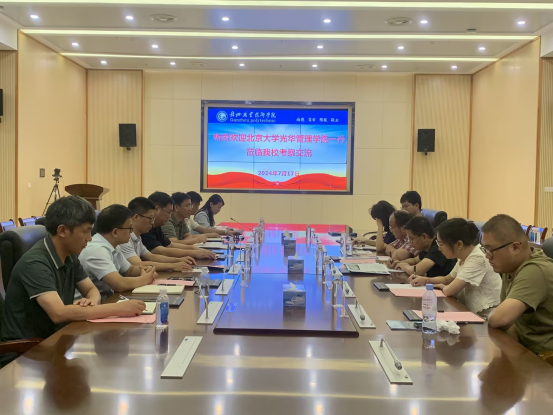座谈会上,汤晓军对嘉宾的到来表示热烈欢迎。麻志明介绍了此次来访目的,学校相关部门人员介绍了学校专业设置、产教融合、毕业生留赣州就业、经济管理学院等基本情况,并对光华管理学院学生提出的相关问题一一详细地解答。光华管理学院一行嘉宾表示,此次调研收获很大,充分肯定了学校的建设成果,表达了对德赢官网调研安排的感谢。