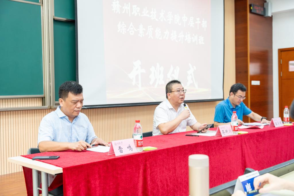 温学延作开班动员讲话,他指出随着党的二十届三中全会胜利闭幕,学校组织本次中层干部培训班是推动学校在职业教育领域高质量发展,奋力书写的重要举措,希望大家珍惜此次培训机会,深学细研,努力在本次培训班上学出真本领。温学延给学员提出四点希望:一是破“心中之贼”。通过学习,破除心中的惯性思维,转变思想、开阔眼界、增强本领,面对新的形势和要求,找到新的方向和道路,更好推动学校建设发展。二是广交八方友。要和职教领域的专家教授多交流,善于把业务工作放在事业全局中来思考,把具体问题提到原则高度来把握,把当前任务放在过程链条中来运筹。三是善思改革策。要踏石留印,提升抓落实本领,增强工作的科学性、预见性、主动性,把雷厉风行和久久为功有机结合起来,用学习培训成效指导工作实践,做到抓铁有痕,全面落实好各项既定任务。四是严明政治纪律和政治规矩,营造端正的学风训风,切实保障本次培训有序有效开展,以实际行动带动全体学员做到学有所获、学以致用。