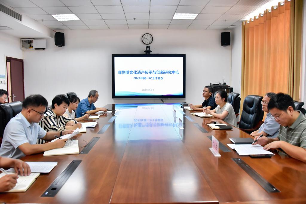 非遗中心主任余万霞对非遗中心的经费计划使用情况做了汇报、对非遗中心工作进行了布置。副主任李能巡就如何将非物质文化遗产的传承人引入校园进行了交流;参会人员共同讨论探讨了非遗中心建设的其它问题。