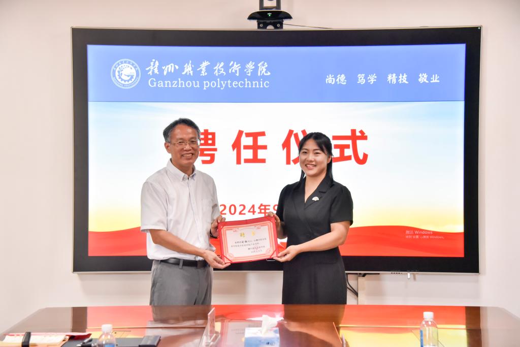 9月21日,南康区委常委、副区长赵磊一行到校座谈会暨聘任仪式在行知楼六楼会议室顺利举行。学校党委书记温学延,党委副书记、校长吴跃文,党委副书记汤晓军,党委委员、副校长林梅、方敏等在家领导,部分二级学院负责人参加座谈会及聘任仪式。