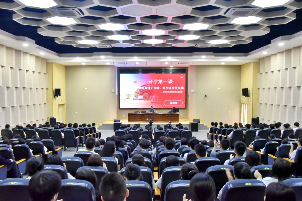 为深入学习贯彻习近平新时代中国特色社会主义思想和党的二十届三中全会精神,落实习近平总书记在全国教育大会上的重要讲话精神,落实立德树人根本任务,引导广大学生坚定理想信念,明确学习目标,以饱满的精神状态迎接新学期的学习和生活。9月25日下午,学校党委书记温学延以“踔厉奋进正当时,而今迈步从头越——如何开启高职院校大学生活”为主题,为新生们带来了一堂精彩纷呈、振奋人心的“开学第一课”。各二级学院师生代表共计300余人参与听课,其他师生线上参与听课。