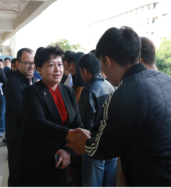 哈力旦·吐尔逊一行深入校园,看望了在校学习培训的克州学生,对学生们表示亲切的问候,并详细了解了他们的学习和生活状况,鼓励他们珍惜在德赢Vwin官方区域合作伙伴的学习机会,努力学习专业知识和技能,为将来建设家乡打下坚实的基础。