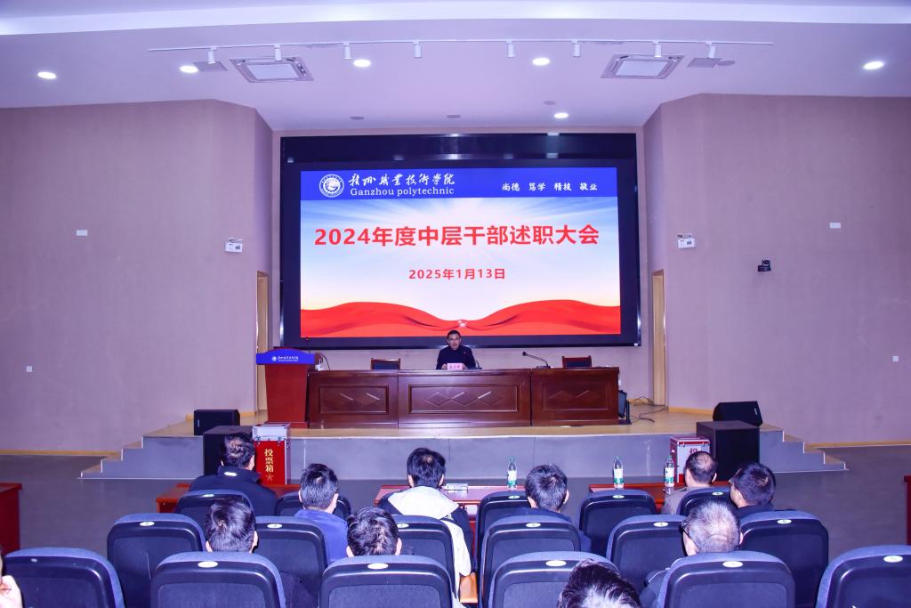 为进一步加强中层干部队伍建设,提升干部履职能力和责任意识,1月13日下午,学校在实训基地报告厅召举行了2024年度中层干部述职大会,党委书记温学延主持会议并讲话,学校在家领导班子成员及教职工代表参加会议。