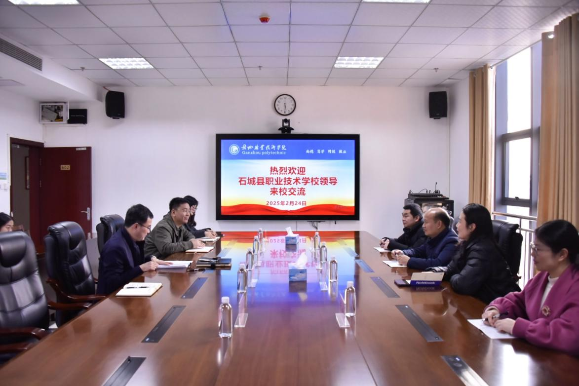 2月24日下午,石城县职业技术学校党支部书记温燕发、校长吴晓蓉一行4人来德赢官网座谈交流,学校党委书记温学延出席座谈会,并与来访团队进行了亲切友好的交流。党委委员、教务处处长于成龙,党政办公室、教务处等部门相关同志参加了座谈会。
