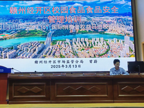 会上,特别邀请了赣州经开区市场监管局专业人员进行授课。培训讲师围绕食品安全法律法规、食堂操作规范、食材采购与储存、食品加工过程中的卫生要求、餐具清洗消毒以及食品留样等关键环节,进行了全面且深入的讲解。通过引用实际案例,生动剖析了食品安全事故的严重后果,强调了严格遵守食品安全规范的重要性,让每一位参会人员深刻认识到自身工作在保障师生饮食安全中的关键作用。