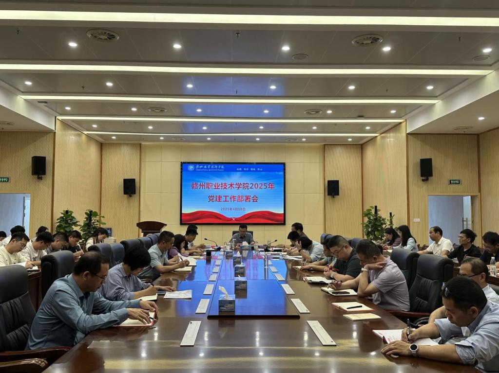 4月18日下午,学校在行知楼二楼会议室召开2025年度党建工作部署会,党委书记温学延出席并讲话,党委副书记汤晓军主持会议,党委委员、组织部部长温继荣,各党总支支委成员和各党支部书记参加会议。