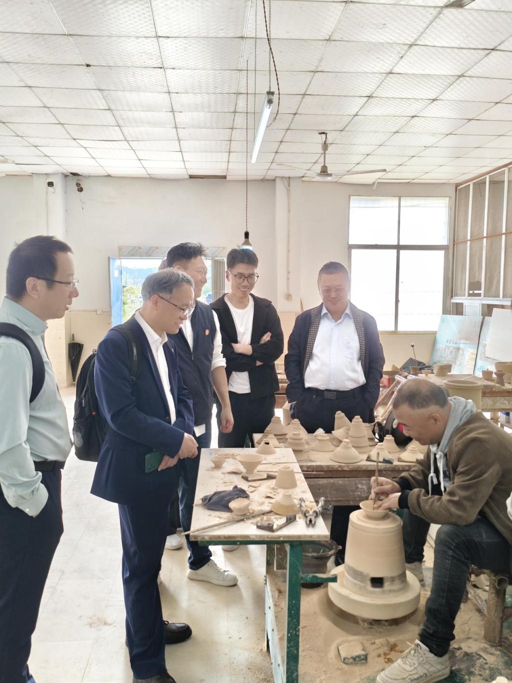 吴跃文一行还走访了景德镇陶瓷职业技术学院非遗学院,陶博城实训基地、校企合作示范中心,就实践教学、特色专业建设等话题展开交流。