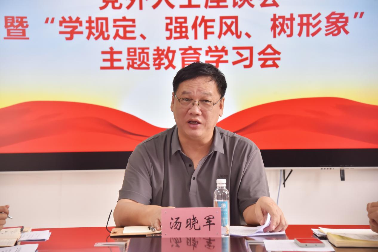 5月29日下午,学校在行知楼六楼会议室召开党外人士座谈会暨“学规定、强作风、树形象”主题教育学习会。党委副书记汤晓军出席会议并讲话,宣传统战部相关工作人员以及党外人士代表参加会议。