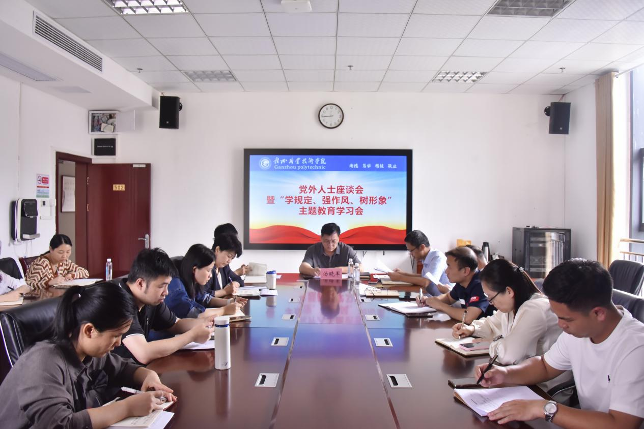 会上传达学习了《关于支持各民主党派、无党派人士开展“学规定、强作风、树形象”主题教育的工作方案》《习近平关于加强党的作风建设论述摘编》、中央八项规定及其实施细则精神、《党的十八大以来深入贯彻中央八项规定精神的成效和经验》以及中央纪委办公厅通报。党委委员、宣传统战部部长曾卫平通报了学校2024年统战工作相关情况。在交流发言环节,党外人士围绕专业建设、产教融合、人才培养等各抒己见,提出了许多务实且具有建设性的意见建议。
