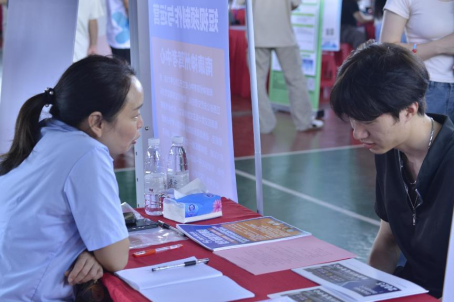 现场设有企业招聘区、就业之家政策咨询区、职业指导专区、直播带岗区、征兵咨询点等多个功能区域,为学子提供政策咨询、职业规划指导、简历优化等服务。
