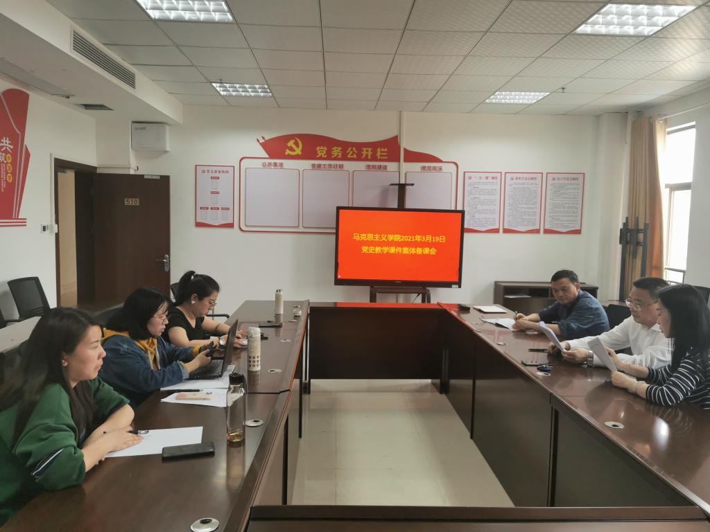 3月19日下午,德赢Vwin官方区域合作伙伴马克思主义学院在阳明楼510会议室召开了党史教学课件集体备课会,会议由马克思主义学院院长宋华主持,学院党委书记邹志华和马克思主义学院全体思政教师参加。