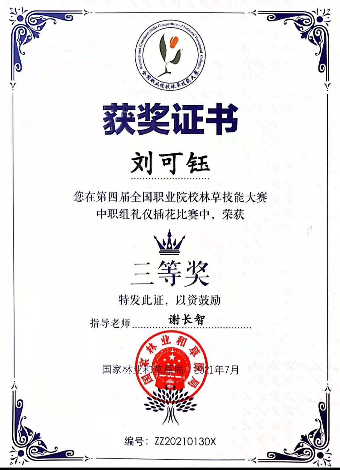 7月10-12日,第四届全国职业院校林草技能大赛在江苏农林职业技术学院举办。全国职业院校林草技能大赛是国家林业和草原局面向林草职业教育相关专业在校学生的一项品牌赛事,大赛每两年举办一次。本届大赛设有园林景观设计(高职)、礼仪插花(中职)等5个赛项。来自全国54所职业院校的选手参加了比赛。我院19园艺(五年制)学子刘可钰经过努力拼搏,最终以第9名的成绩获得三等奖。