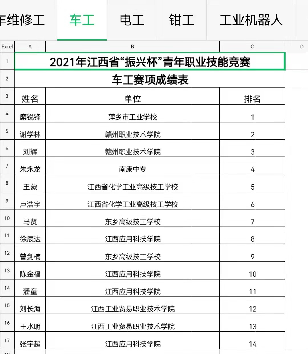 9月23日至25日,由共青团江西省委、江西省人力资源和社会保障厅联合主办的2021年江西省“振兴杯”青年职业技能竞赛决赛在江西南昌举行,我院机电工程系选手谢学林、刘辉不负众望,脱颖而出,勇夺本次大赛车工项目学生组第二名和第三名。