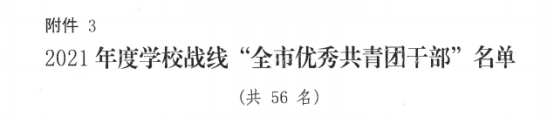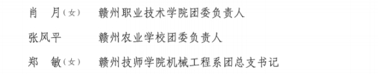 近日,从共青团赣州市委、赣州市教育局联合印发的《关于表彰2021年度学校战线“全市五四红旗团委”“全市五四红旗团支部(总支)”“全市优秀共青团干部”“全市优秀共青团员”的决定》(赣市团联〔2022〕14号)获悉,我院(含赣州农业学校、江西赣州技师学院)肖月、张风平、郑敏等3位教师获“全市优秀共青团干部”荣誉称号,敖嘉雯、谢文宁、阳荣玺等3位同学获“全市优秀共青团员”荣誉称号。