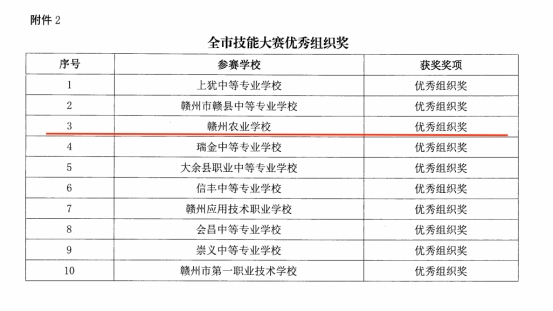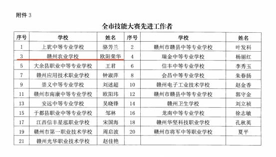 同时,赣州农业学校荣获“全市技能大赛优秀组织奖”,欧阳荣华荣获“全市技能大赛先进工作者”称号。