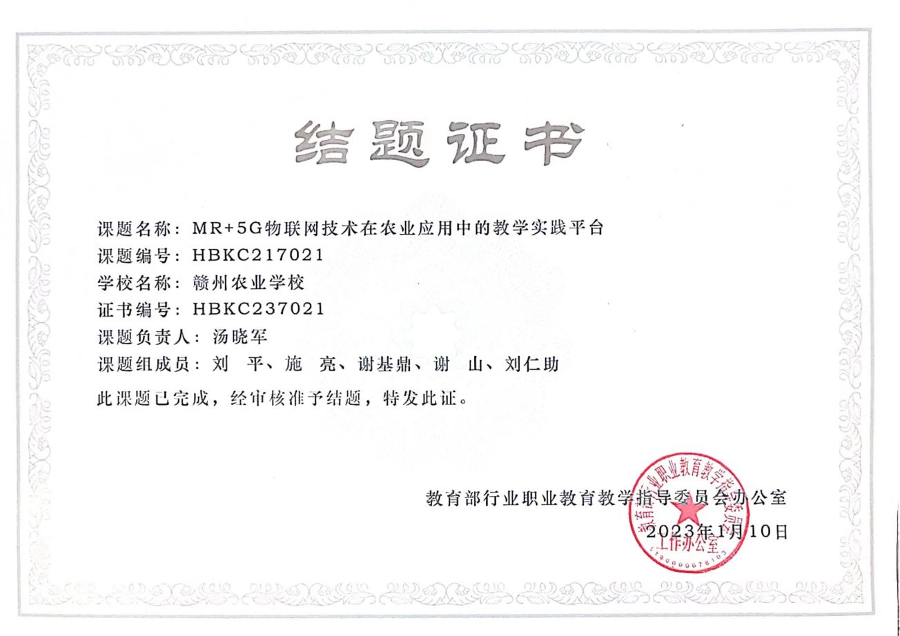 近日,从教育部行业职业教育教学指导委员会工作办公室获悉,我院以学院党委副书记汤晓军为课题负责人申请立项的省部级课题《MR+5G物联网技术在农业应用中的教学实践平台》(编号:HBKC2017021)通过一年多的研究实践,经课题组专家评审鉴定,顺利结题。
