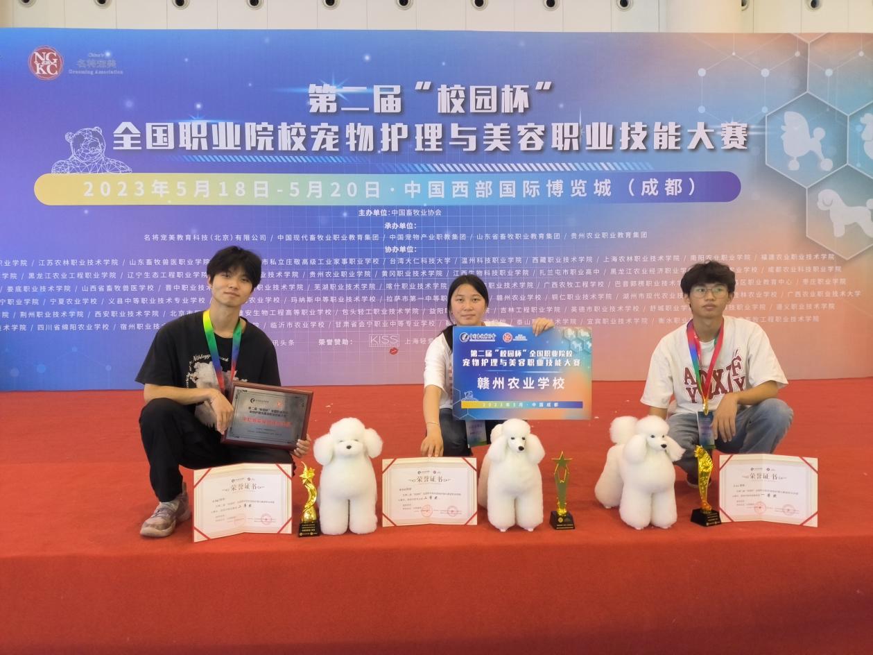 5月18日至20日,第二届“校园杯”全国职业院校宠物护理与美容职业技能大赛在四川成都隆重举行。我院动物科学系动物医学教研室主任顾红霞与三名学生分别参加了教工组与学生组的比赛。最终斩获教师中级创意组特等奖一项、学生组一等奖一项、二等奖二项,荣获中职组最佳团体技术奖。
