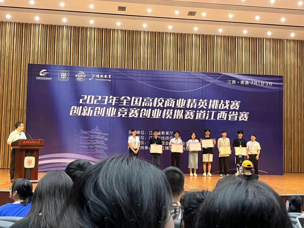 近日,由江西省教育厅主办的高校商业精英创新创业挑战赛在南昌圆满落幕,学院蓝鑫、郑慧媛、邓平羊、刘云、卢英凤等5位同学组建的“‘精’商有道”队在吴旺、刘媛两位老师的指导下获得省赛二等奖优异成绩,并将代表江西省参加全国决赛。