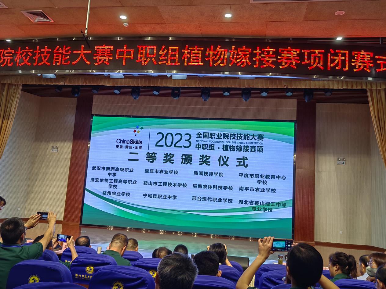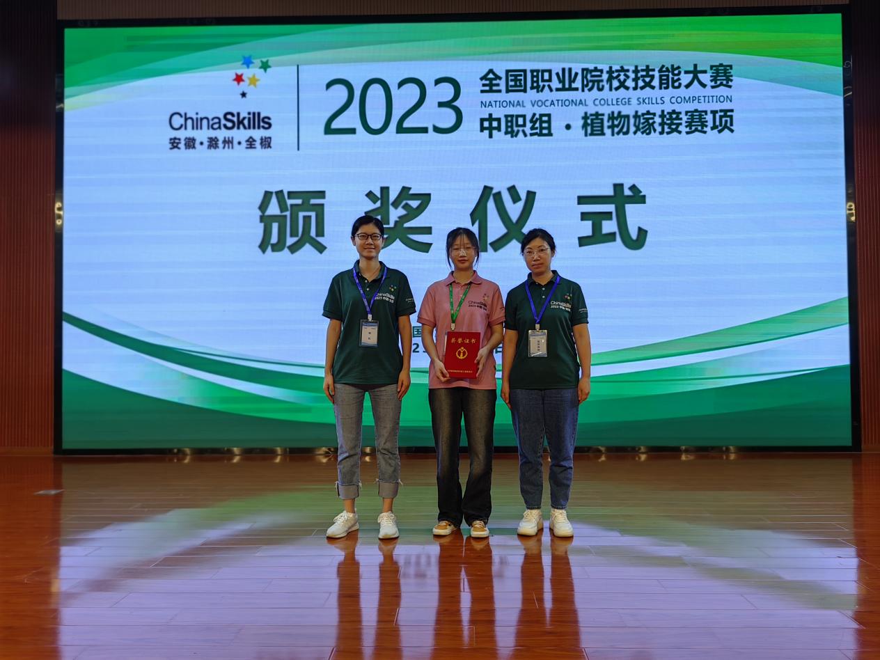 7月11日至13日,2023年全国职业院校技能大赛(中职组)植物嫁接赛项在安徽省滁州市应用技术学校举行。此次大赛共有62支代表队参加,经过两天的激烈角逐,学院现代农林工程系张素华老师指导的谢崇瑶同学获得大赛二等奖。