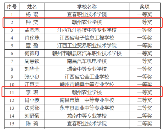 近日,江西省教育厅对2023年江西省职业院校技能大赛中等职业学校班主任能力比赛获奖名单进行公示,通过校赛、市赛、省赛三级选拔,学院教师钟奕、李琪荣获一等奖。