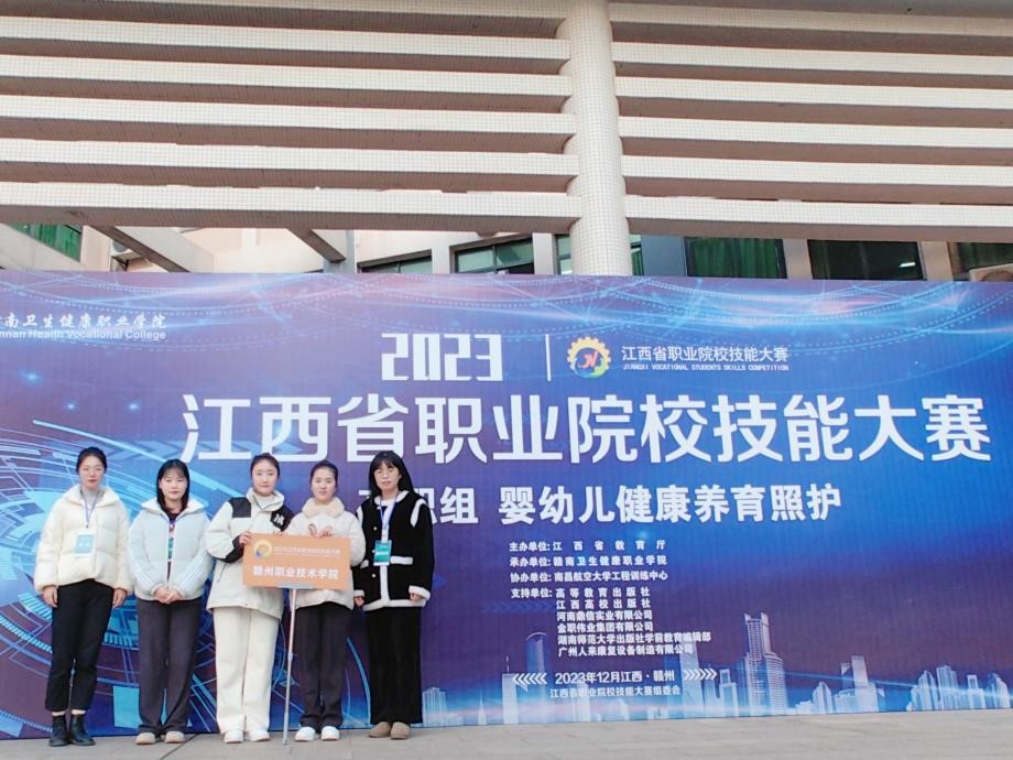 近日,由江西省教育厅主办的2023江西省职业院校技能大赛,赣南卫生健康职业学院承办的婴幼儿健康养育照护赛项(高职组)与上饶幼儿师范高等专科承办的婴幼儿照护赛项(高职组)顺利落下帷幕。我院现代服务系婴幼儿托育服务与管理专业学生赖惠、刘莉(指导教师:刘苗、黄黎谊)荣获婴幼儿健康养育照护赛项团体二等奖,罗婉珑、刘雯静、林树珍(指导教师:肖艺娴、刘苗)荣获婴幼儿照护赛项团体三等奖。