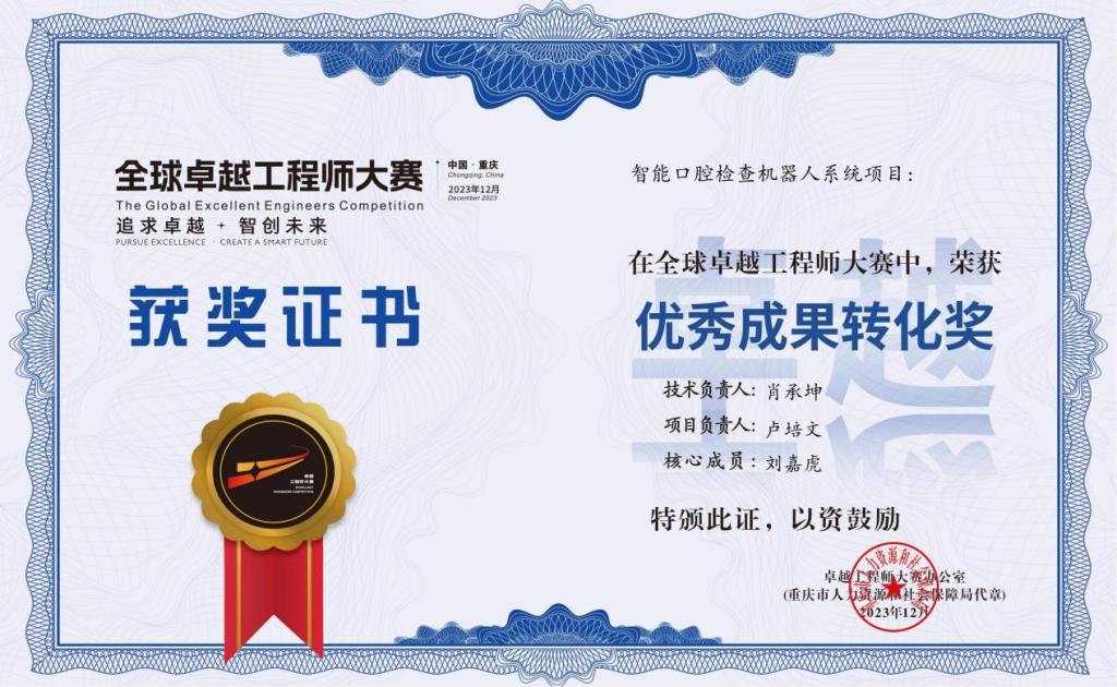 全球卓越工程师大赛自今年8月启动以来,累计吸引来自25个国家(地区)1005个项目(团队)报名参赛,其中在创新挑战赛道中总计申报项目372个,经过激烈角逐,智能制造系教师团队卢培文、肖承坤、刘嘉虎申报的项目荣获优秀成果转化奖。