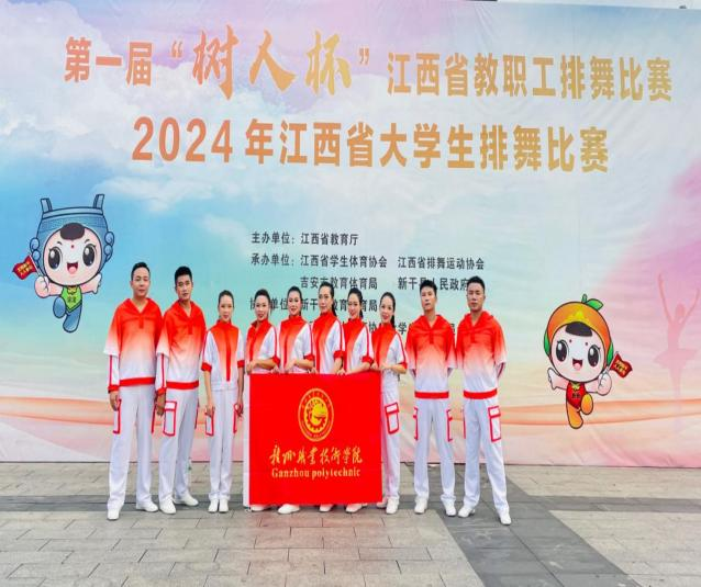 德赢官网共有10名教职工参与了此次赛事,在公共基础部体育教师黄晶和康涛的悉心指导下,教师团队在比赛中充分展现了团队协作能力和艺术表现力,以精彩的舞姿和稳定的发挥赢得了评委和观众的一致好评,最终收获了1金、1铜牌,即教工组大集体单曲规定动作第一名;小集体单曲自选动作第三名。