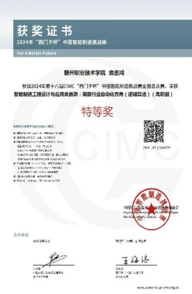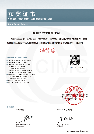 8月12日-15日,教育部第十八届CIMC“西门子杯”中国智能制造挑战赛全国总决赛在湖州师范学院落下帷幕。由德赢官网电气工程学院胡顺兴、左伟平老师指导池志鸿、陈梦琪、郭宸的学生团队经过全国初赛层层选拔、全国总决赛激烈角逐,从全国700多所院校、7000多支参赛队、25000余名师生中脱颖而出,德赢官网代表队荣获离散行业自动化逻辑算法赛项高职组特等奖(全国第二名)。