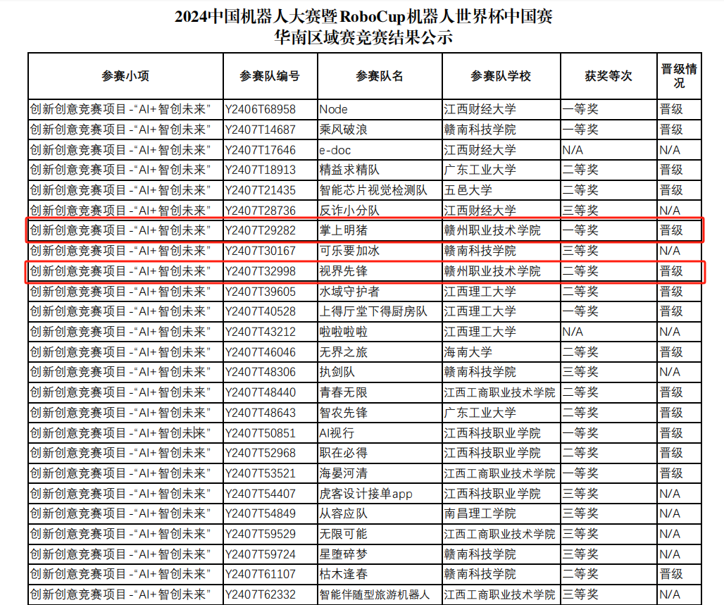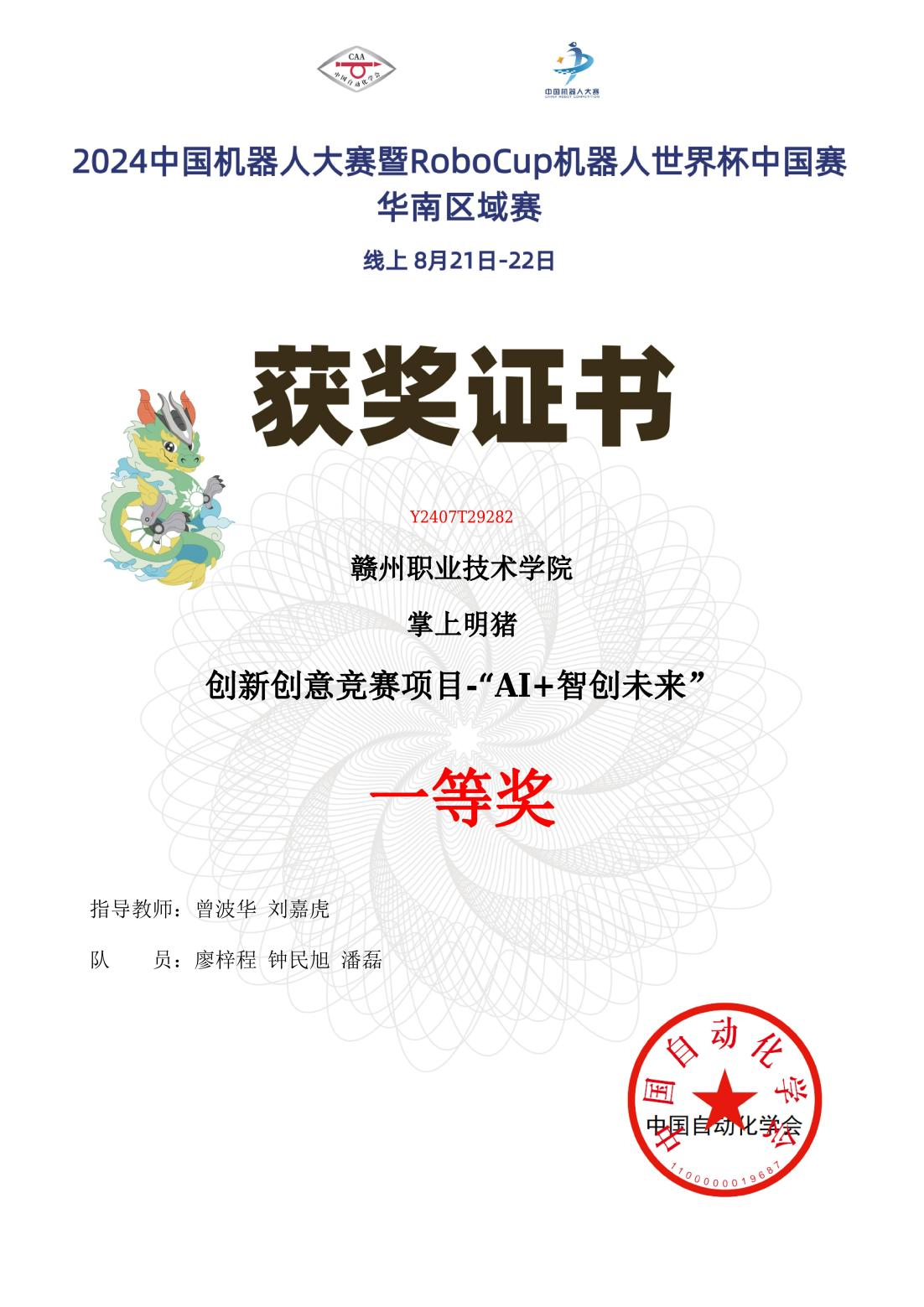 经前期资格审查、复审及路演答辩的激烈角逐,由智能制造学院教师曾波华、刘嘉虎指导,学生廖梓程、钟民旭、潘磊组成的队伍荣获一等奖,由教师彭延超、卢培文指导,学生屈帅全、周亚杰、刘富、朱金、王子祥组成的队伍荣获二等奖,两队均成功晋级国赛。