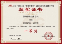 在刚刚结束的第三届“中外传播杯”全国大学生翻译大赛中,德赢官网英语教师刘智临指导的学生付有荣获高职高专组全国一等奖,邹雨露同学以及汤文娟同学喜获高职高专组全国三等奖,彭玲同学获优秀奖。“中外传播杯”全国大学生翻译大赛是由中共中央直属事业单位外文局组织承办的全国性翻译比赛,是全国大学生翻译类比赛的权威比赛。