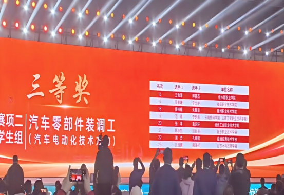 11月17日至11月20日,以“绿色驱动梦想·新质引领未来”为主题的第四届全国新能源汽车关键技术技能大赛决赛在安徽省芜湖市顺利结束,由李建飞、仲先国老师指导汽车工程学院学子廖梓程、朱智豪参加汽车零部件装调工(汽车电动化技术方向)学生组赛项,通过江西省选拔赛进入全国决赛,在全国46支决赛队伍中以第18名的成绩荣获全国三等奖。