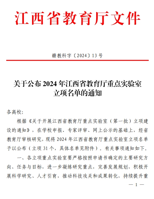 【喜报】德赢官网首个省级重点实验室“江西省教育厅畜禽绿色健康养殖技术重点实验室”成功获批立项