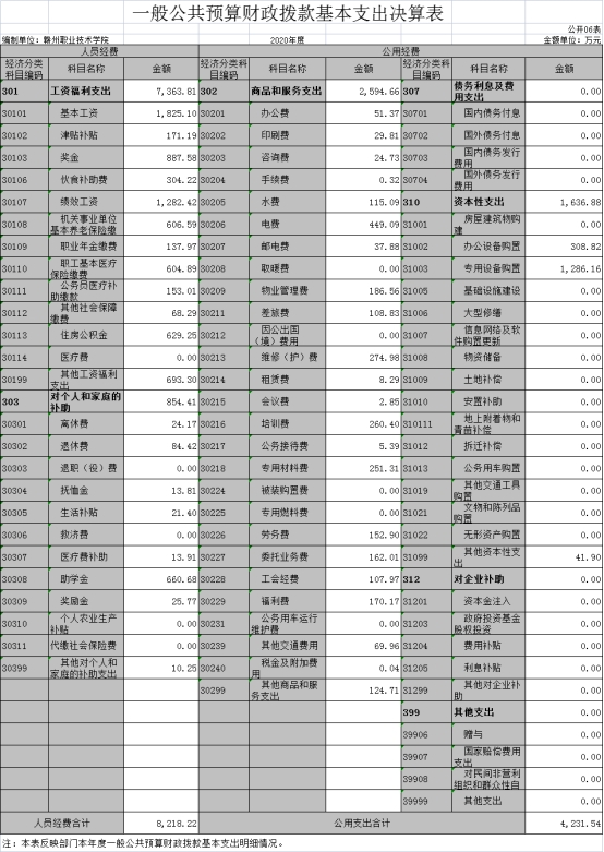 2020年,学院各级认真履职,面对突发的严重疫情,及时调整支出,足额报账防疫相关经费支出:积极保人员、保水电、保后勤等基本运行经费上重点支出,同时加大教学实训场所等建设,保障教学的正常开展。整体上各项工作开展有序,资金分配合理,支付及时,预算执行到位。