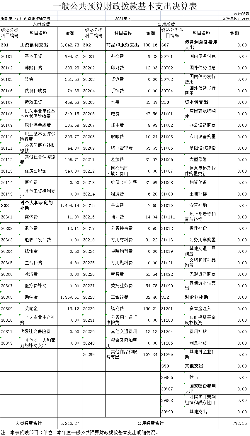 (一)工资福利支出3842.73万元,较2020年增加207.08 万元,增长5.70%,主要原因是:根据学院管理和教学需要,在职人员增加,且社保等基数调增,导致工资福利支出增加。