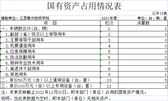 截止2021年12月31日,本单位国有资产占用情况见公开10表《国有资产占用情况表》。其中车辆中的其他用车主要是2005年购置的载货汽车(含自卸汽车),我院已实行公车改革所有车辆均已统一移交,该车因固定资产处置手续未办理齐全,暂未下账,实际已不在使用。