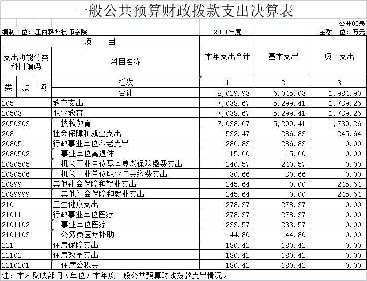 我院将“江西赣州技师学院教育事业发展资金”项目支出绩效评价表向社会公开,具体见附件:2021年江西赣州技师学院市本级预算项目绩效评价表。