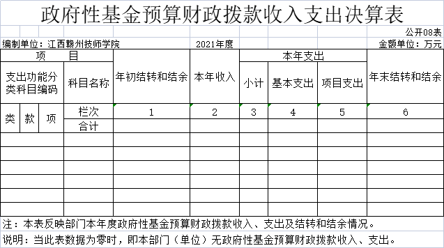 八、年初结转和结余:指单位上年结转本年使用的基本支出结转、项目支出结转和结余和经营结余。