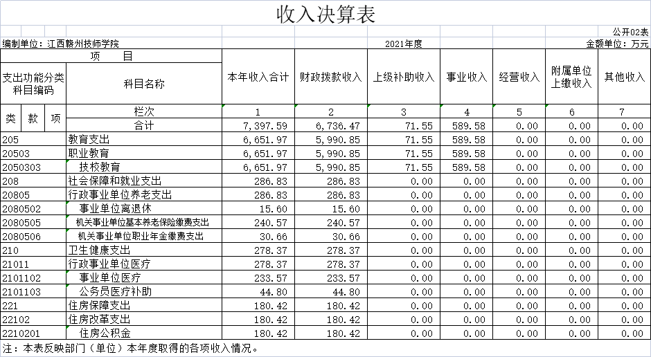 本年收入的具体构成为:财政拨款收入6736.47万元,占91.06%;上级补助收入71.55万元,占0.97%;事业收入589.58万元,占7.97%;经营收入0万元,占0%;其他收入0万元,占0%。