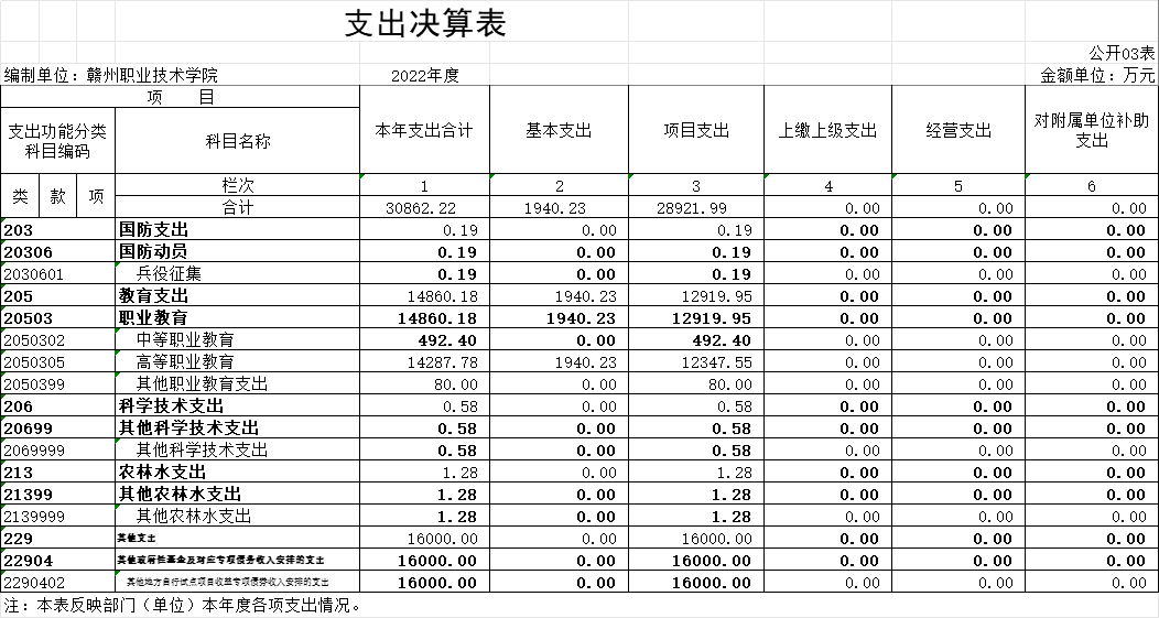 6、基本支出:指为保障机构正常运转、完成日常工作任务而发生的人员支出和公用支出。