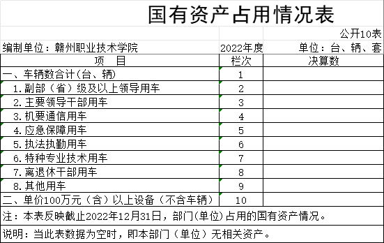 截止2022年12月31日,本单位国有资产占用情况见公开10表《国有资产占用情况表》。其中车辆中的其他用车:无。