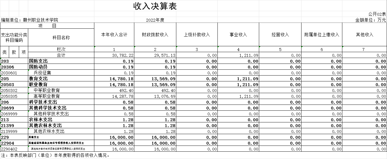 本年收入的具体构成为:财政拨款收入29,571.13万元,占96.07%;事业收入1,211.09万元,占3.93%;经营收入0万元,占0%;其他收入0万元,占0%。