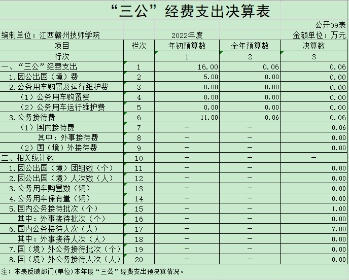 (二)公务接待费支出全年预算数为11万元,决算数为 0.06万元,完成全年预算的0.55%,决算数较2021年减少0.89万元,下降93.68%,主要原因是与主管部门同校区融合发展办学,部分公务接待活动由主管部门统筹安排。决算数较全年预算数减少的主要原因是:与主管部门同校区融合发展办学,部分公务接待活动由主管部门统筹安排。全年国内公务接待1批,累计接待7人次,其中外事接待0批,累计接待0人次,主要为:省就创中心一行来校开展社会培训评价组织遴选备案技术评估现场核查公务活动。