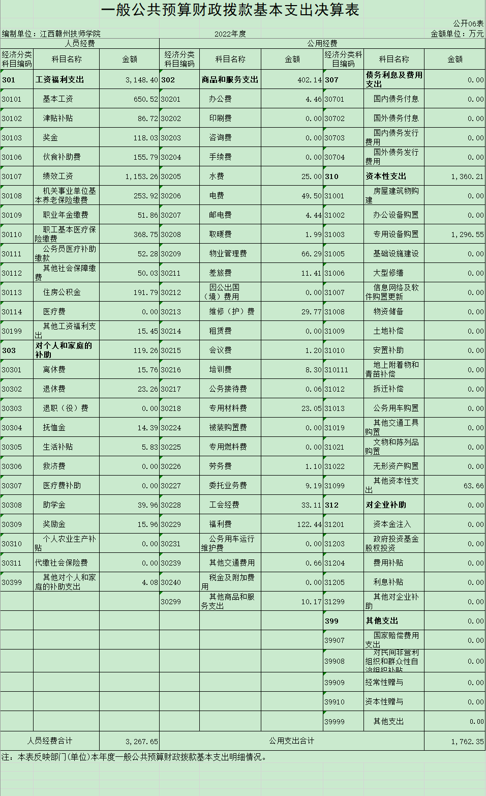 (一)工资福利支出3148.4万元,较2021年减少694.33 万元,下降18.07%,主要原因是:根据学院资金安排,通过国免补助、省生均费等项目经费中列支部分工资福利支出,列入项目支出,导致基本支出部分相对减少。